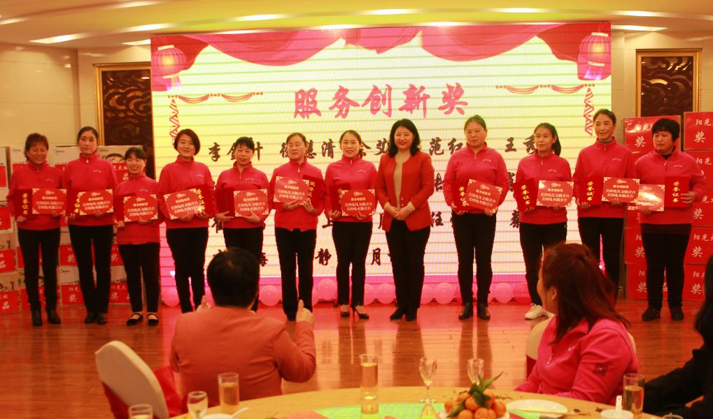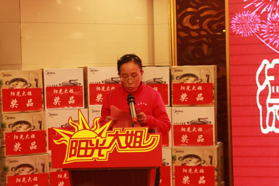 ??????會上,公司為獲得“無私奉獻獎”,“愛崗敬業(yè)獎”、“服務(wù)創(chuàng)新獎”的34名職工分別頒發(fā)了獎狀、獎品。王秀蓮、孫春燕、付立梅三位獲獎代表,在會上作典型發(fā)言。介紹了她們在各自崗位上,愛崗敬業(yè),無私奉獻,創(chuàng)新服務(wù),視用戶為親人,任勞任怨,兢兢業(yè)業(yè),無怨無悔為用戶服務(wù)的感人事跡。她們的事跡深深感動了與會人員,表示要以她們?yōu)榘駱?,向她們學(xué)習(xí)。首席金牌月嫂余艾金在聽了劉總的講話和三位獲獎代表的發(fā)言后,備受感動并在現(xiàn)場分享了她的所感所想。余艾金講述了自己由一名普通的家庭主婦成長為一名備受社會和用戶尊敬的服務(wù)員。她說她的成長離不開劉總的辛勤付出,陽光大姐今天的輝煌也成就了千百個大姐的優(yōu)秀。余艾金代表大姐們向劉總獻花,對劉總表示誠摯的感謝。