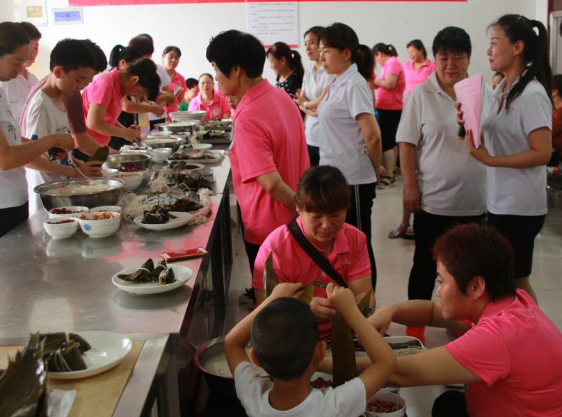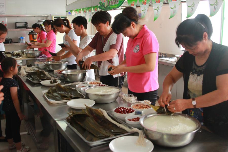 ? ? “各就各位,預備,開始!隨著一聲令下,德州陽光大姐組織的親子包粽子比賽正式開賽,三十個家庭五十多雙手動了起來,捋粽葉、填芯餡、裹粽子。在場的每個人都忙得熱火朝天。
