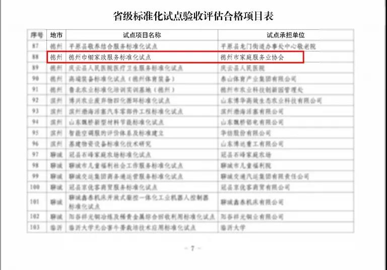 德州市家庭服務(wù)業(yè)協(xié)會巾幗家政服務(wù)標準化試點項目通過省級驗收