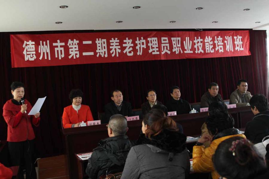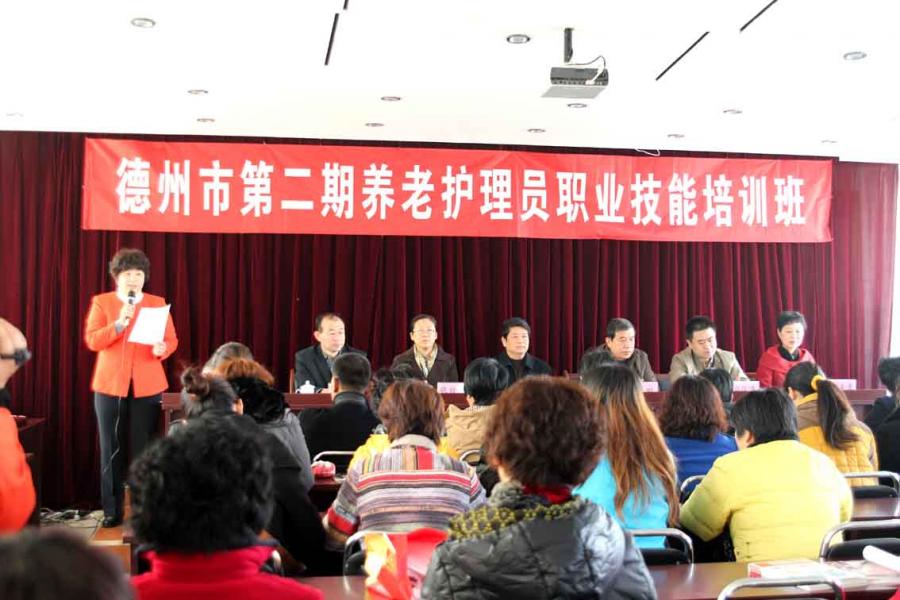 ? ? 為推動(dòng)全市養(yǎng)老服務(wù)業(yè)快速發(fā)展,建設(shè)一支專業(yè)化、職業(yè)化的養(yǎng)老服務(wù)員隊(duì)伍,由市老齡辦、市人社局舉辦,德州陽光大姐家政職業(yè)培訓(xùn)學(xué)校承辦的全市第二期初級(jí)養(yǎng)老護(hù)理員培訓(xùn)班于11月8日在我學(xué)校開班。市老齡辦主任張衛(wèi)東、副主任張效清,市就業(yè)辦主任徐剛等領(lǐng)導(dǎo)出席了開班儀式。張衛(wèi)東主任、劉俊杰經(jīng)理、老師代表、學(xué)員代表分別作了講話。