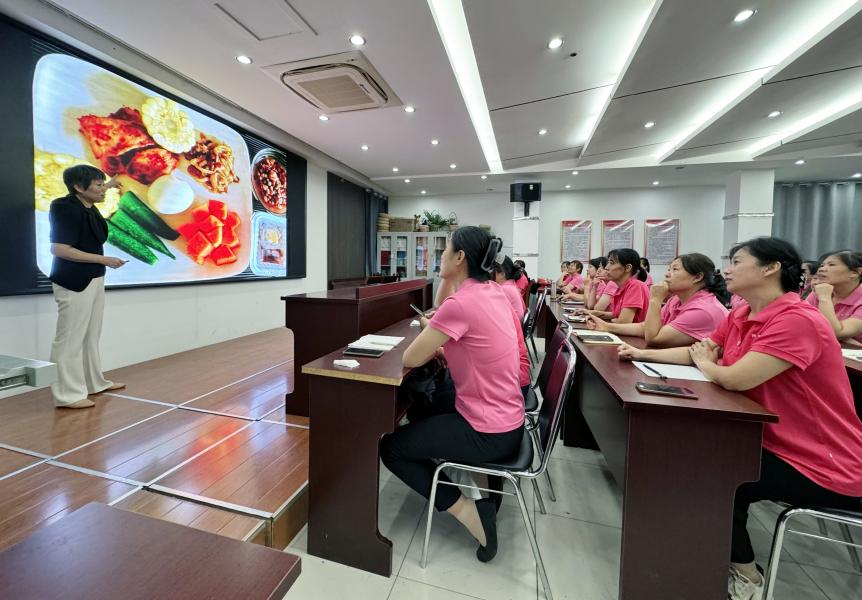 為增強(qiáng)家政從業(yè)人員營(yíng)養(yǎng)膳食的理念和知識(shí),提升職業(yè)化水平,為用戶提供更專業(yè)、更健康的服務(wù)。9月11日德州陽(yáng)光大姐特邀國(guó)際注冊(cè)營(yíng)養(yǎng)師、德州市營(yíng)養(yǎng)協(xié)會(huì)鄭會(huì)長(zhǎng)開(kāi)展 “引領(lǐng)‘食’尚? 健康賦能”活動(dòng)。公司100余名家政從業(yè)人員參加此次活動(dòng)。